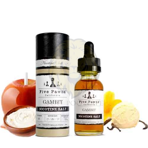 Featuring a creamy peanut butter edge. This smooth vape made with fresh banana cream and then drizzled with velvety caramel flavor. This Nic Salts e-juice considered an all-day vape by many customers and vaping enthusiasts alike. This Five Pawns nic salt transcends mellow sweetness.