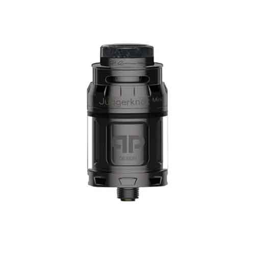 JUGGERKNOT MINI RTA By qp Design, An atomizer 24mm in diameter and has a capacity that can pass from 2ml to 4.5ml depending on the reservoir. The Juggerknot Mini has the particularity to have aeration from the top of the tank to avoid leaking of e liquids. The filling is also effectuated from the top.